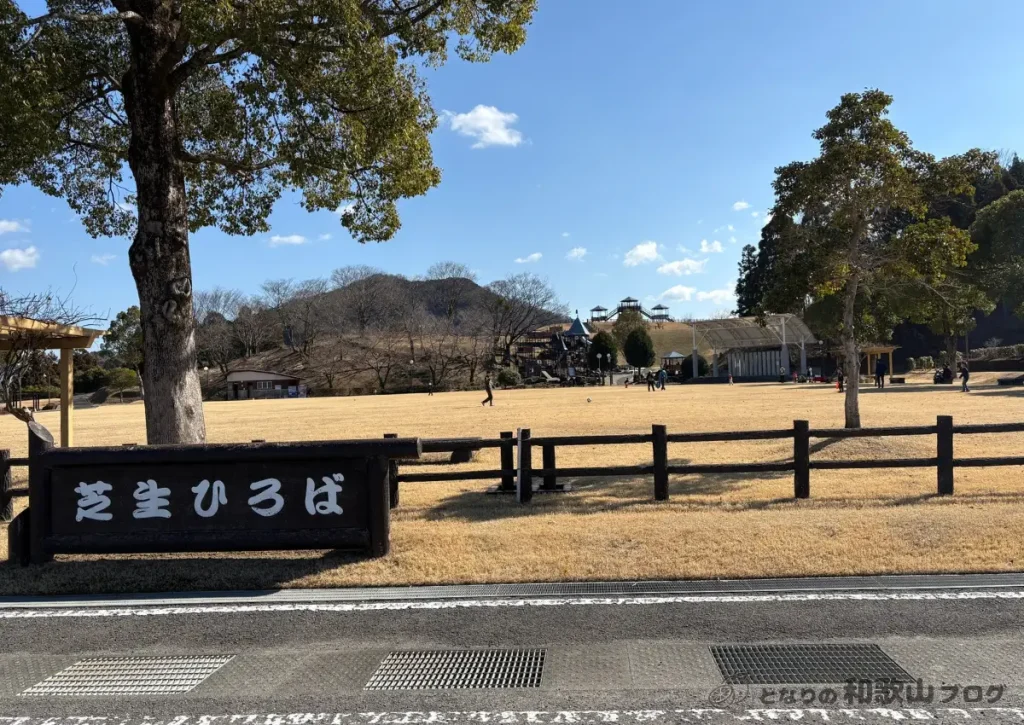 紀美野町の旧野上の山中にある公園。だだっ広い芝生広場と、傾斜に建てられた大型遊具が魅力的。幼児から小学生程度のお子さんにはぴったりの公園です。