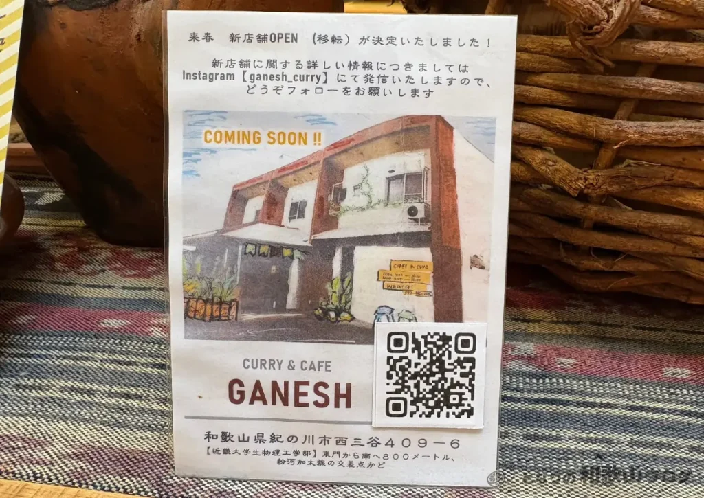 kimino’s cafeを運営されている『GANESH』さんは、4月より紀の川市に『CURRY & CAFE GANESH』として移転オープンします。近大生物理工学部の近くです。