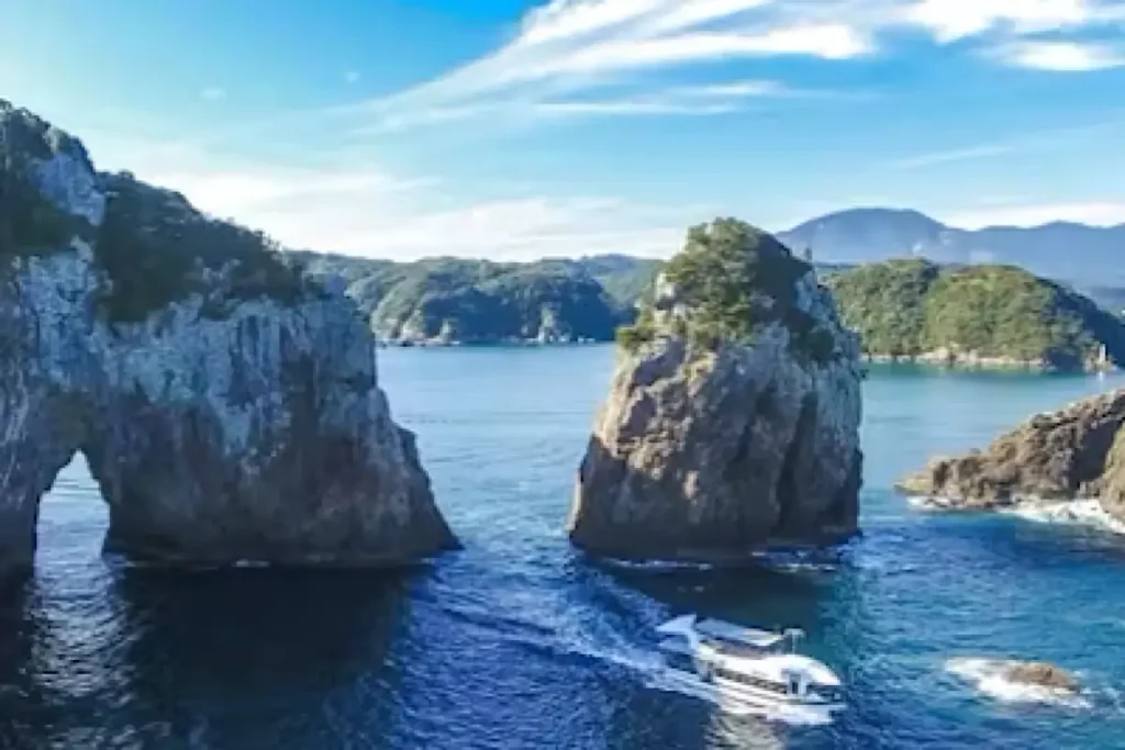そして勝浦港の観光桟橋から「くじら号」などの遊覧船が「紀の松島めぐり」です。